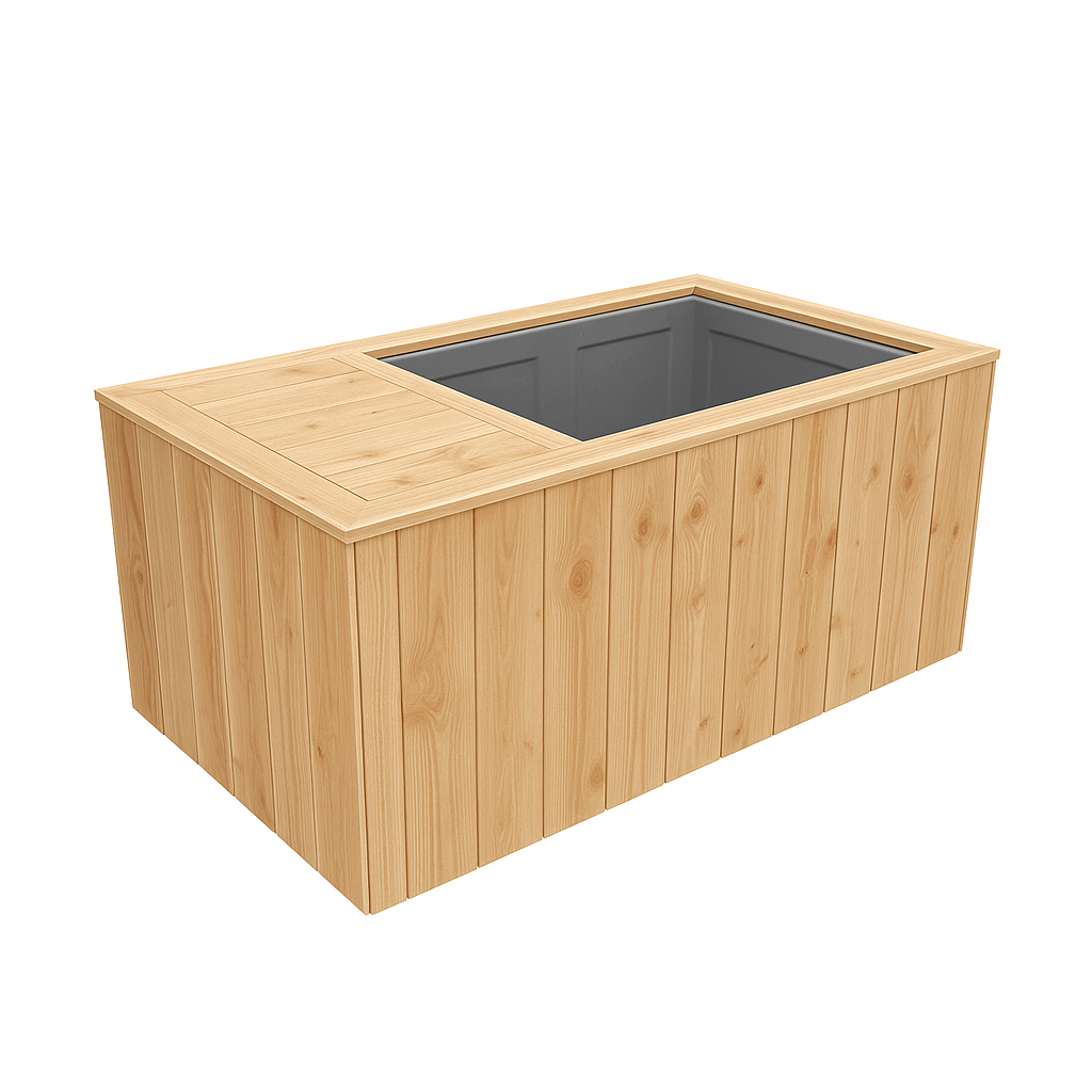 Ervaar de kracht van koudwatertherapie in stijl met ons hoogwaardige ijsbad, ontworpen voor zowel esthetiek als functionaliteit. De binnenkant is vervaardigd uit duurzaam kunststof, terwijl de buitenwand is afgewerkt met robuust douglashout, wat zorgt voor een natuurlijke uitstraling die naadloos in elke tuin of wellnessruimte past.
